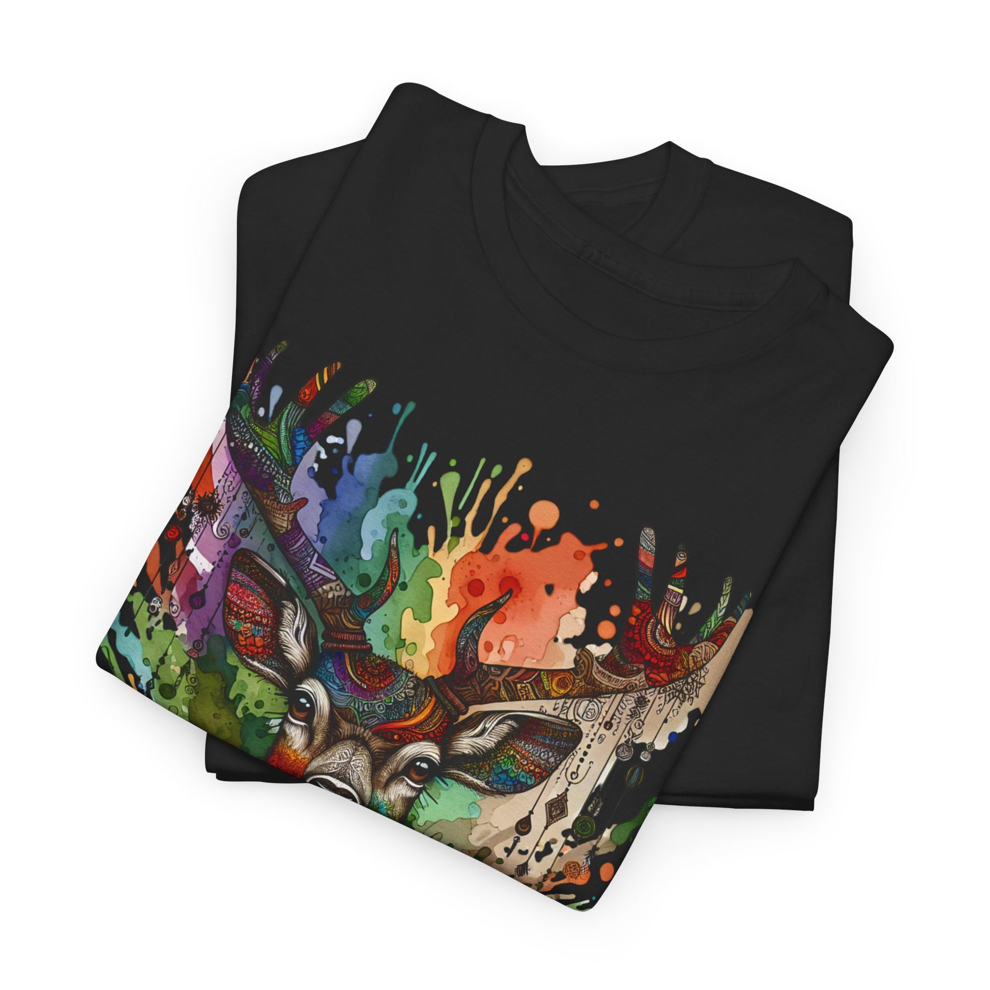 📛 Front: Watercolor deer with rainbow splatter and symbolic details